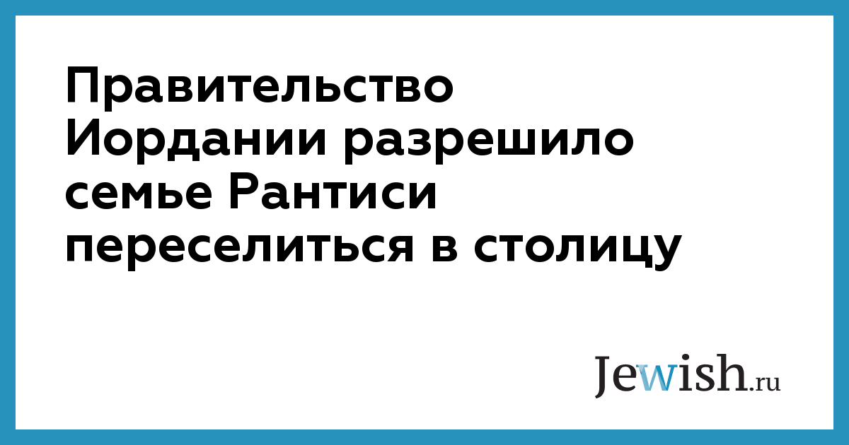 Правительство Иордании разрешило семье Рантиси переселиться в столицу