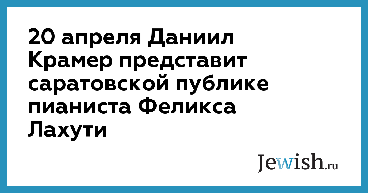 20 апреля Даниил Крамер представит саратовской публике пианиста Феликса Лахути