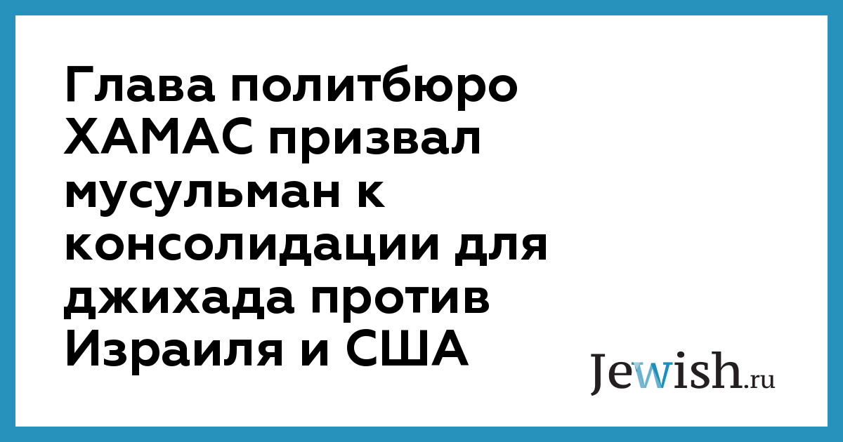 Глава политбюро ХАМАС призвал мусульман к консолидации для джихада против Израиля и США