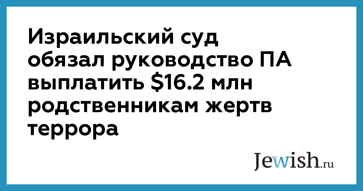 Израильский суд обязал руководство ПА выплатить $16.2 млн родственникам жертв террора
