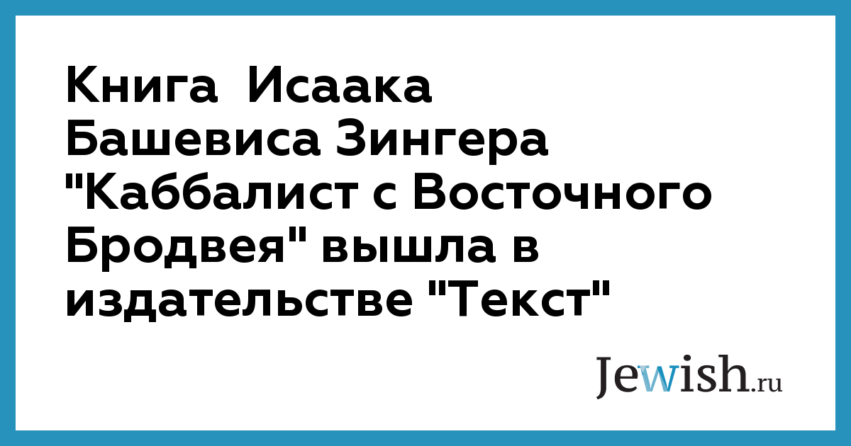 Книга Исаака Башевиса Зингера "Каббалист с Восточного Бродвея" вышла в издательстве "Текст"