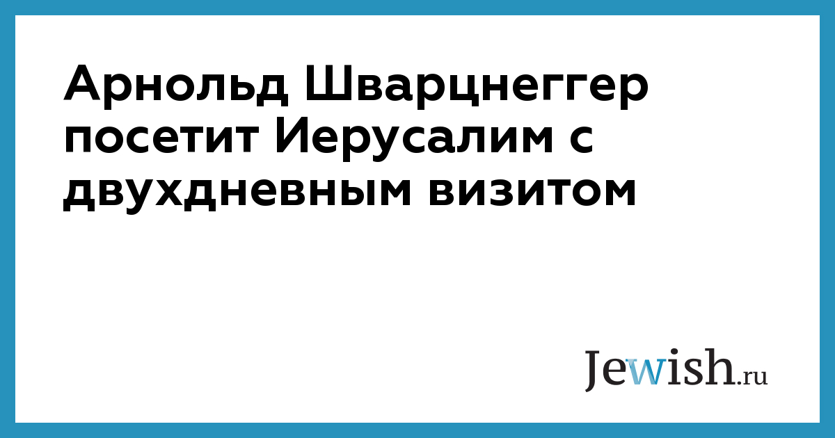 Арнольд Шварцнеггер посетит Иерусалим с двухдневным визитом