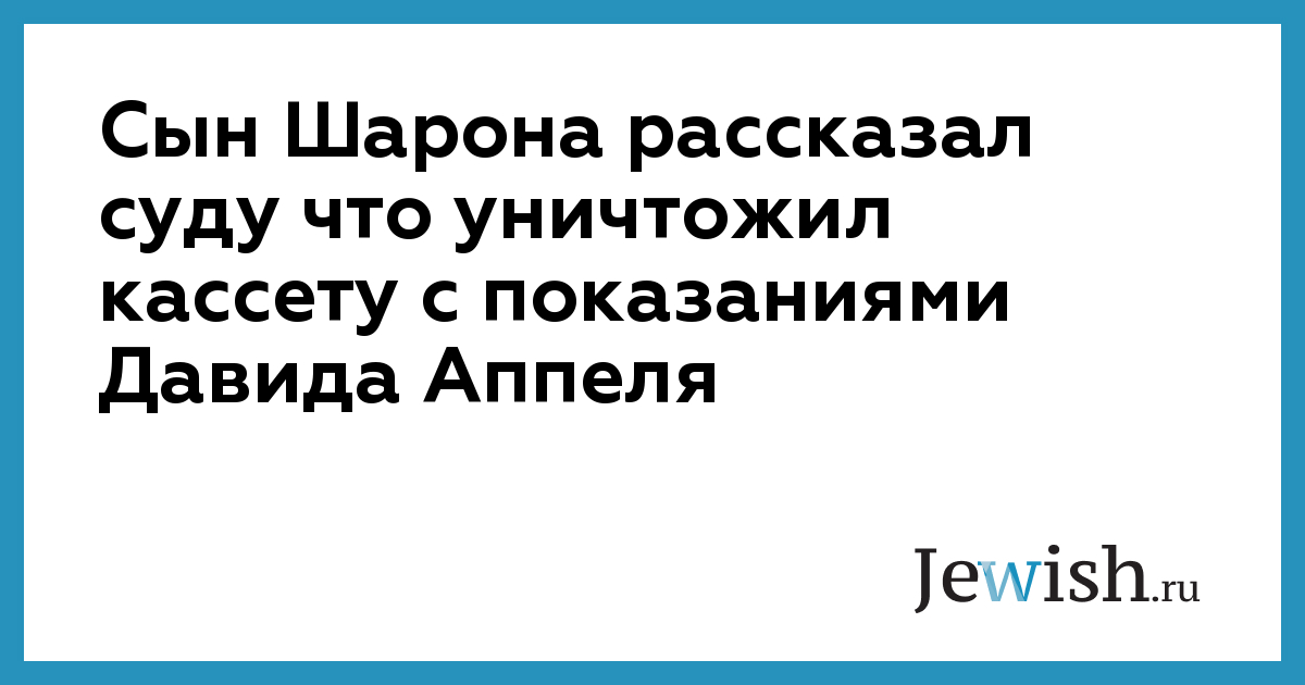 Сын Шарона рассказал суду что уничтожил кассету с показаниями Давида Аппеля