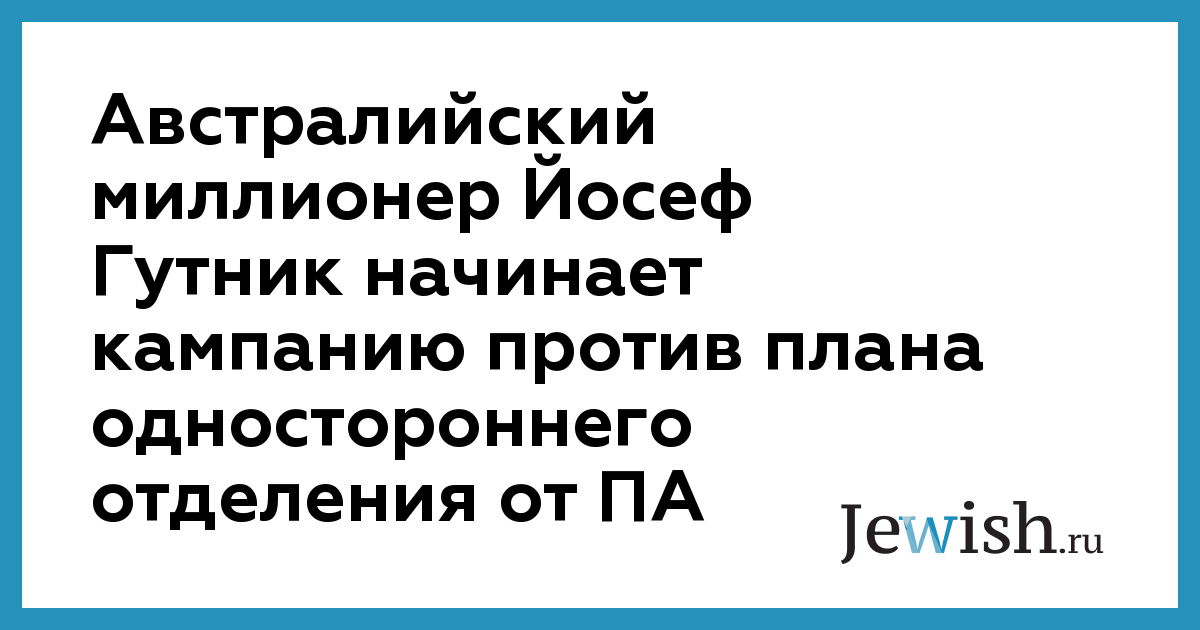 Австралийский миллионер Йосеф Гутник начинает кампанию против плана одностороннего отделения от ПА