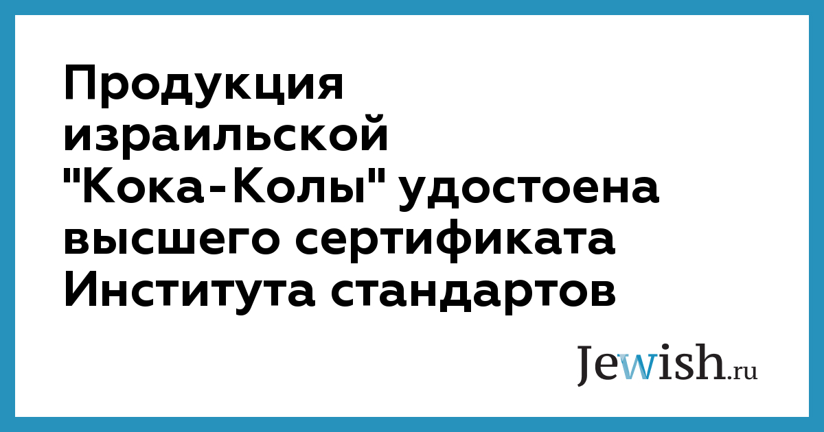 Продукция израильской "Кока-Колы" удостоена высшего сертификата Института стандартов