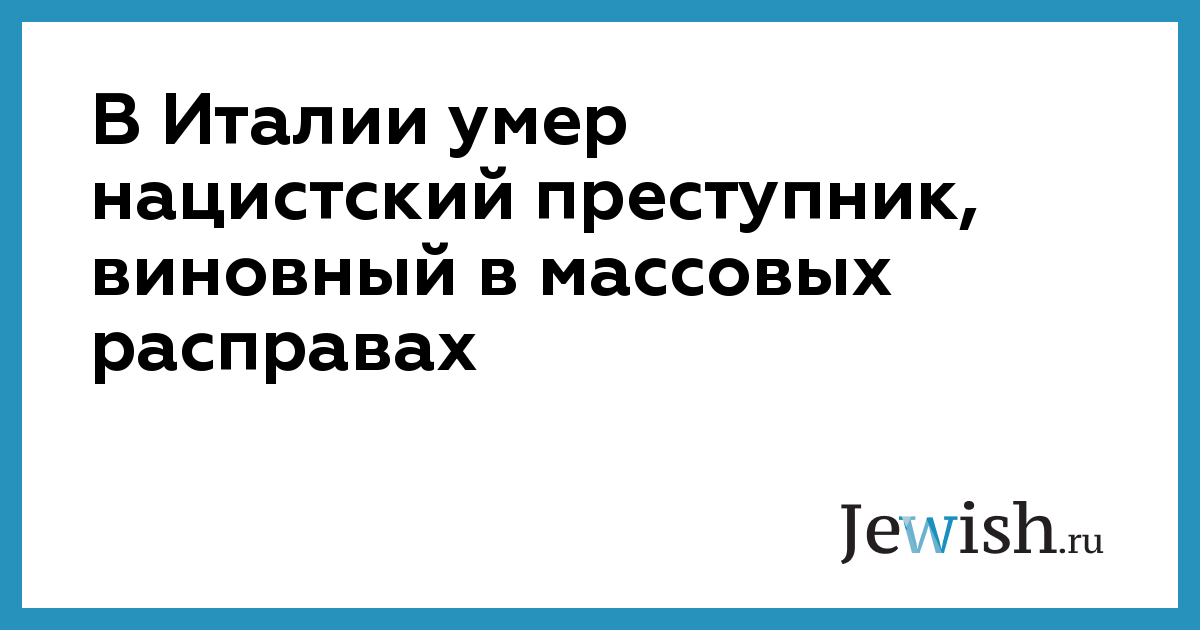 В Италии умер нацистский преступник, виновный в массовых расправах