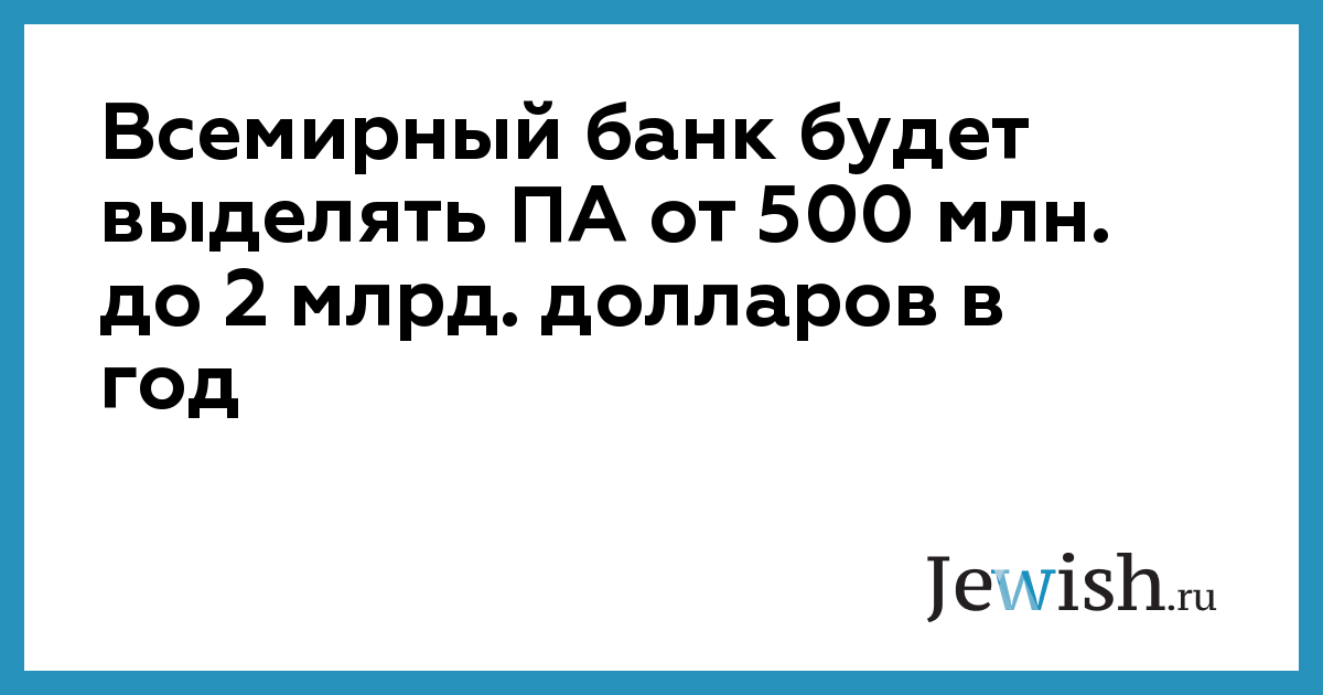 Всемирный банк будет выделять ПА от 500 млн. до 2 млрд. долларов в год