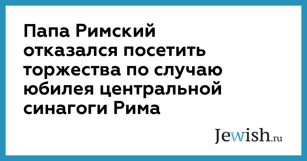 Папа Римский отказался посетить торжества по случаю юбилея центральной синагоги Рима