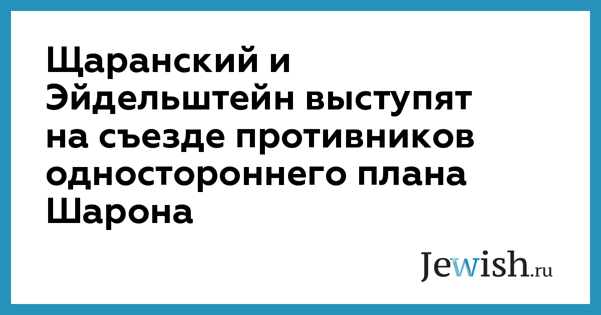Щаранский и Эйдельштейн выступят на съезде противников одностороннего плана Шарона