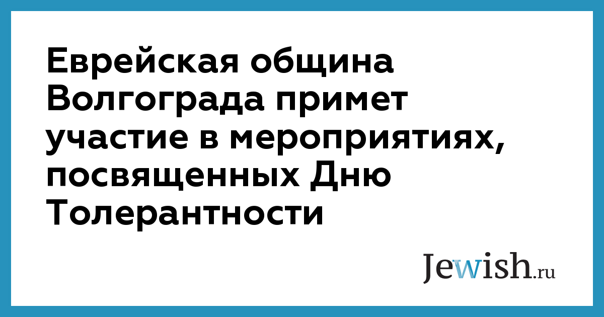 Еврейская община Волгограда примет участие в мероприятиях, посвященных Дню Толерантности