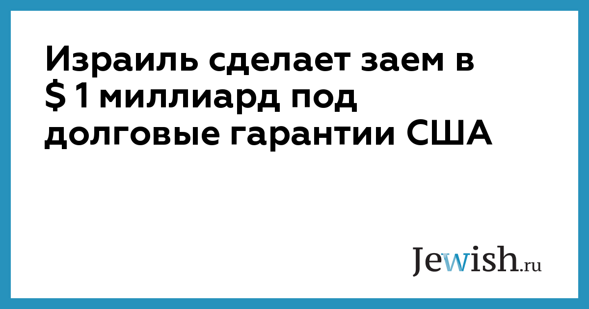 Израиль сделает заем в $ 1 миллиард под долговые гарантии США
