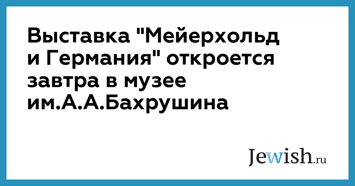 Выставка "Мейерхольд и Германия" откроется завтра в музее им.А.А.Бахрушина