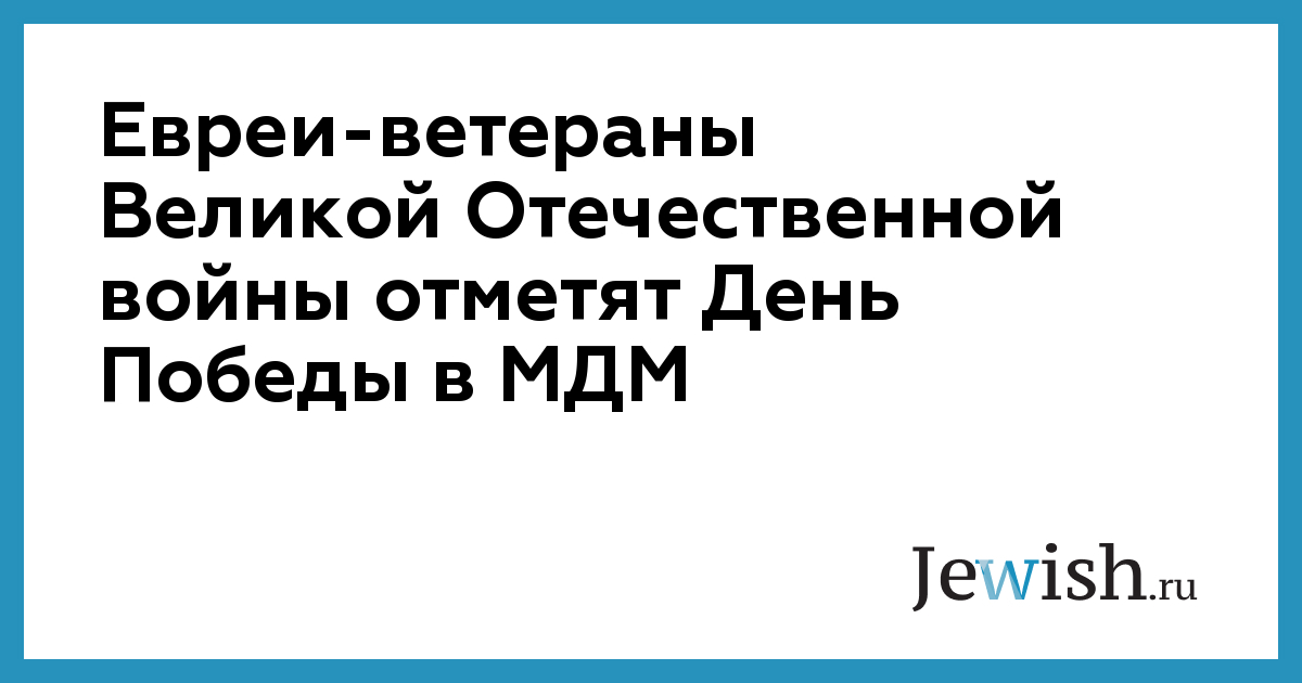 Евреи-ветераны Великой Отечественной войны отметят День Победы в МДМ