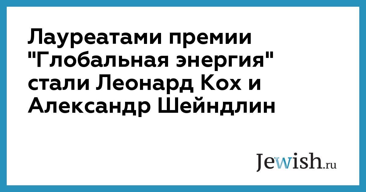 Лауреатами премии "Глобальная энергия" стали Леонард Кох и Александр Шейндлин