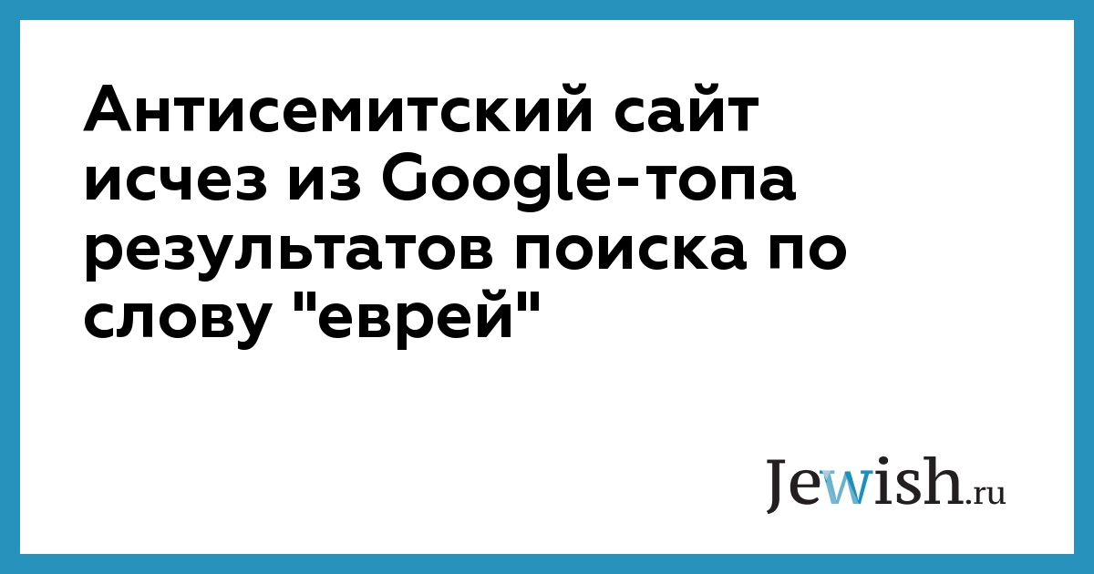 Антисемитский сайт исчез из Google-топа результатов поиска по слову "еврей"