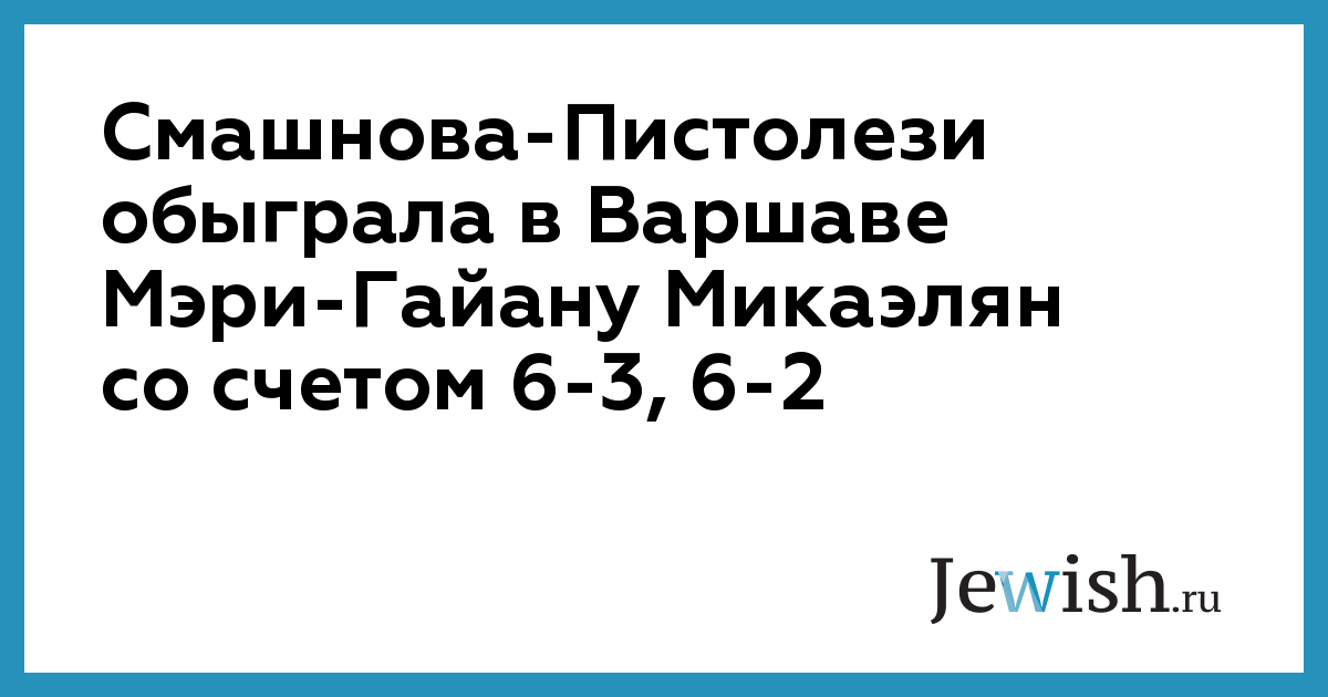 Смашнова-Пистолези обыграла в Варшаве Мэри-Гайану Микаэлян со счетом 6-3, 6-2