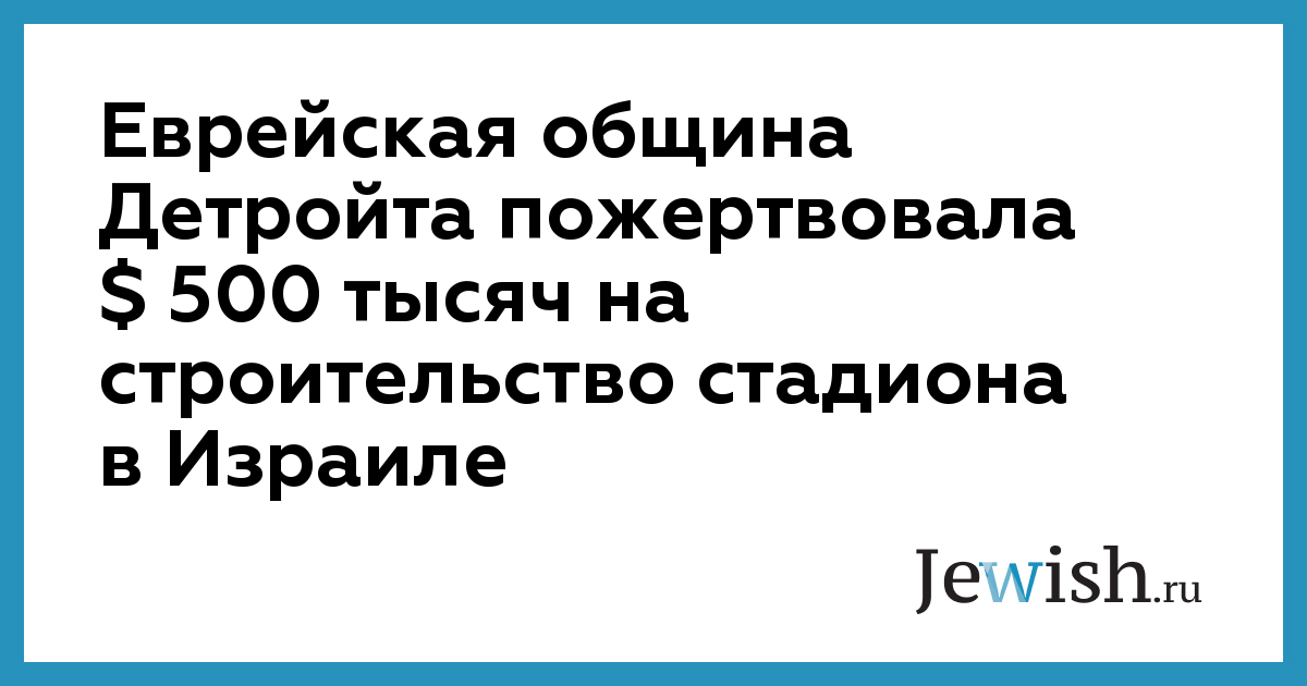 Еврейская община Детройта пожертвовала $ 500 тысяч на строительство стадиона в Израиле