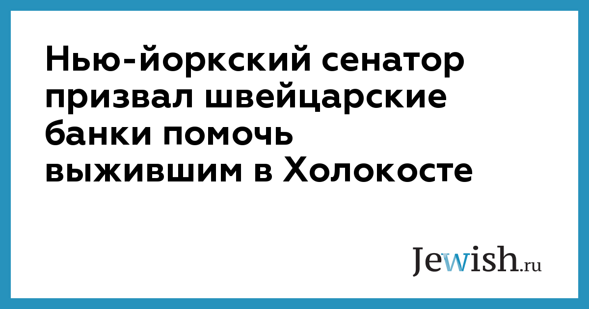 Нью-йоркский сенатор призвал швейцарские банки помочь выжившим в Холокосте