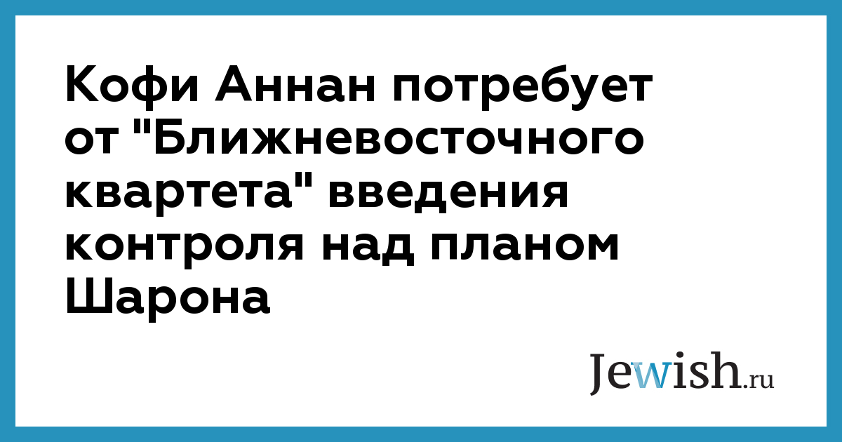 Кофи Аннан потребует от "Ближневосточного квартета" введения контроля над планом Шарона