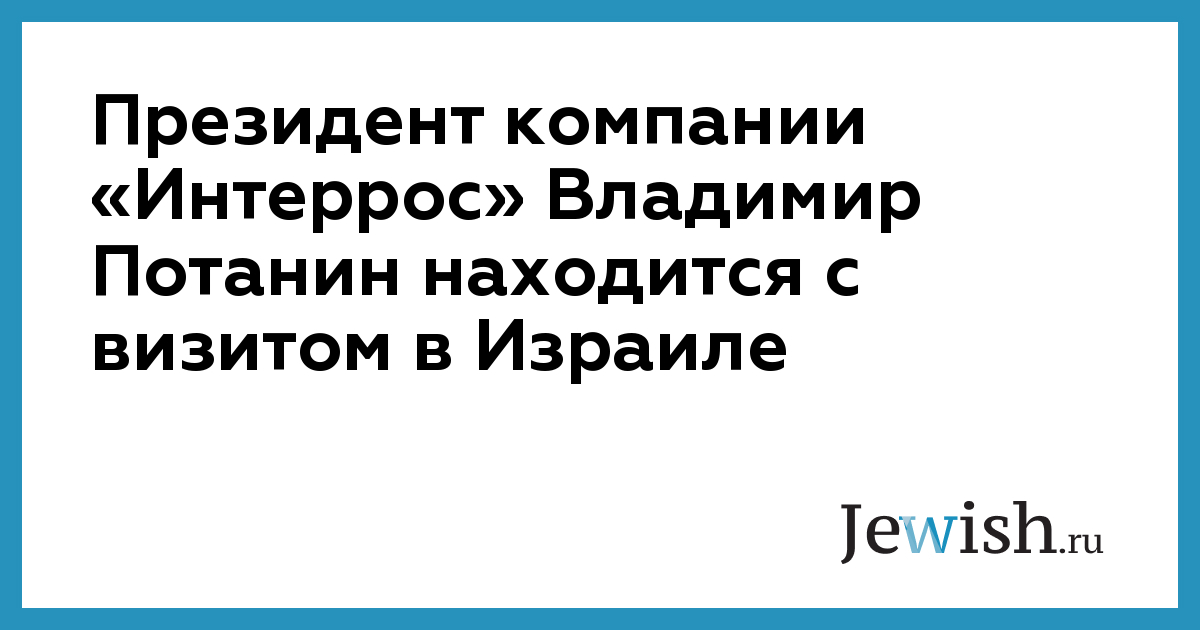Президент компании «Интеррос» Владимир Потанин находится с визитом в Израиле