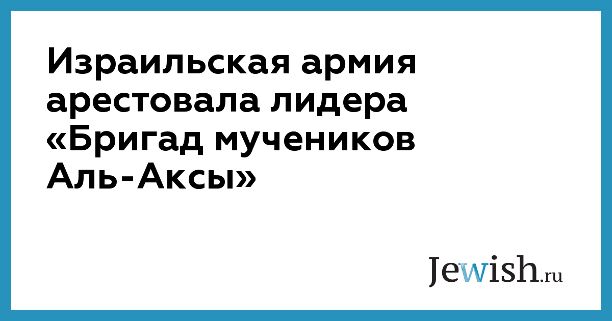 Израильская армия арестовала лидера «Бригад мучеников Аль-Аксы»