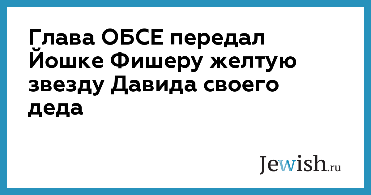 Глава ОБСЕ передал Йошке Фишеру желтую звезду Давида своего деда