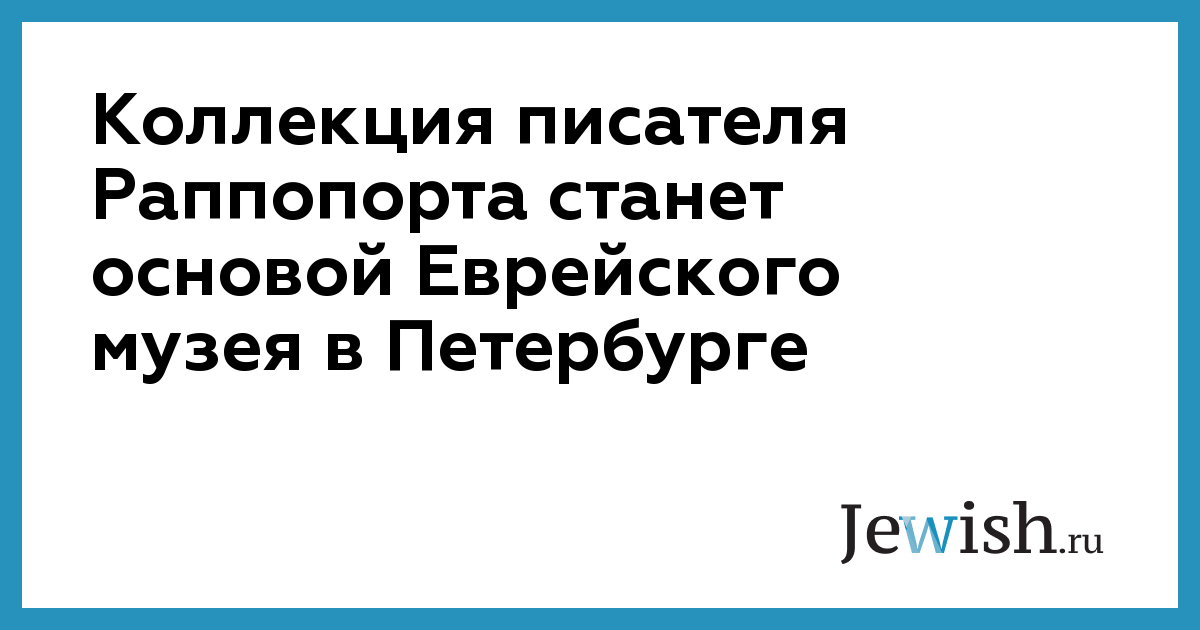 Коллекция писателя Раппопорта станет основой Еврейского музея в Петербурге