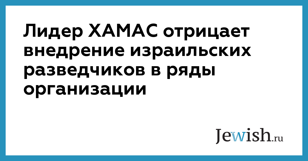 Лидер ХАМАС отрицает внедрение израильских разведчиков в ряды организации