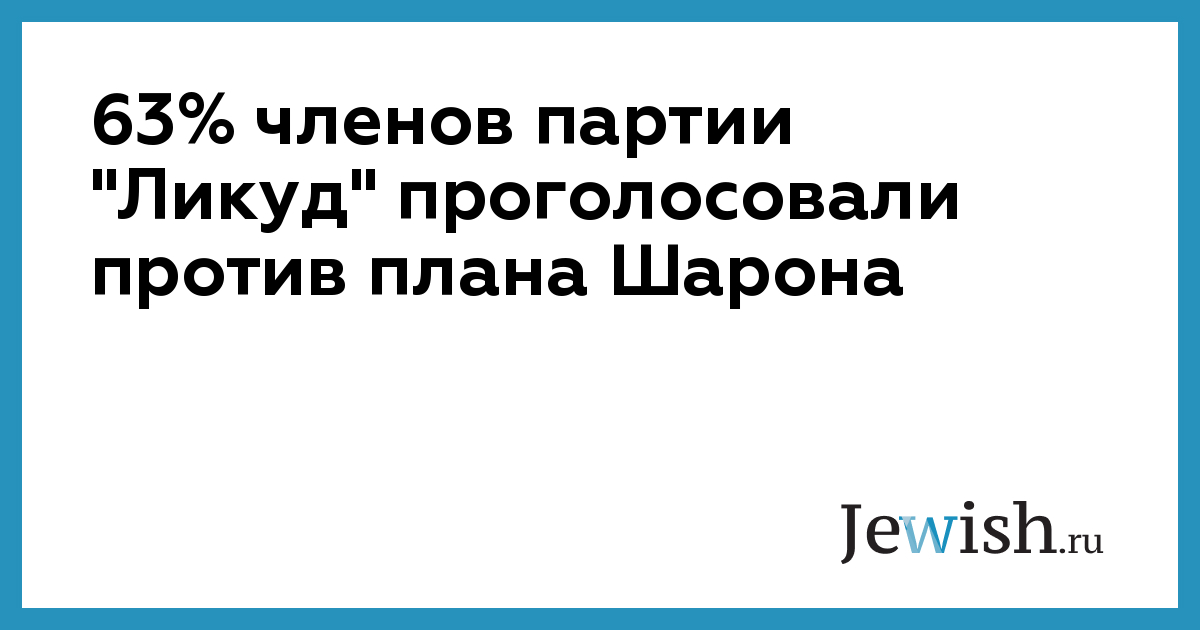 В воскресенье около 200 тысяч зарегистрированных членов партии должны были принять или отвергнуть план, предусматривающий вывод войск и эвакуацию 8,5 тысяч еврейских поселенцев из сектора Газа, а также четырех поселений, расположенных в северной части Западного берега реки Иордан.