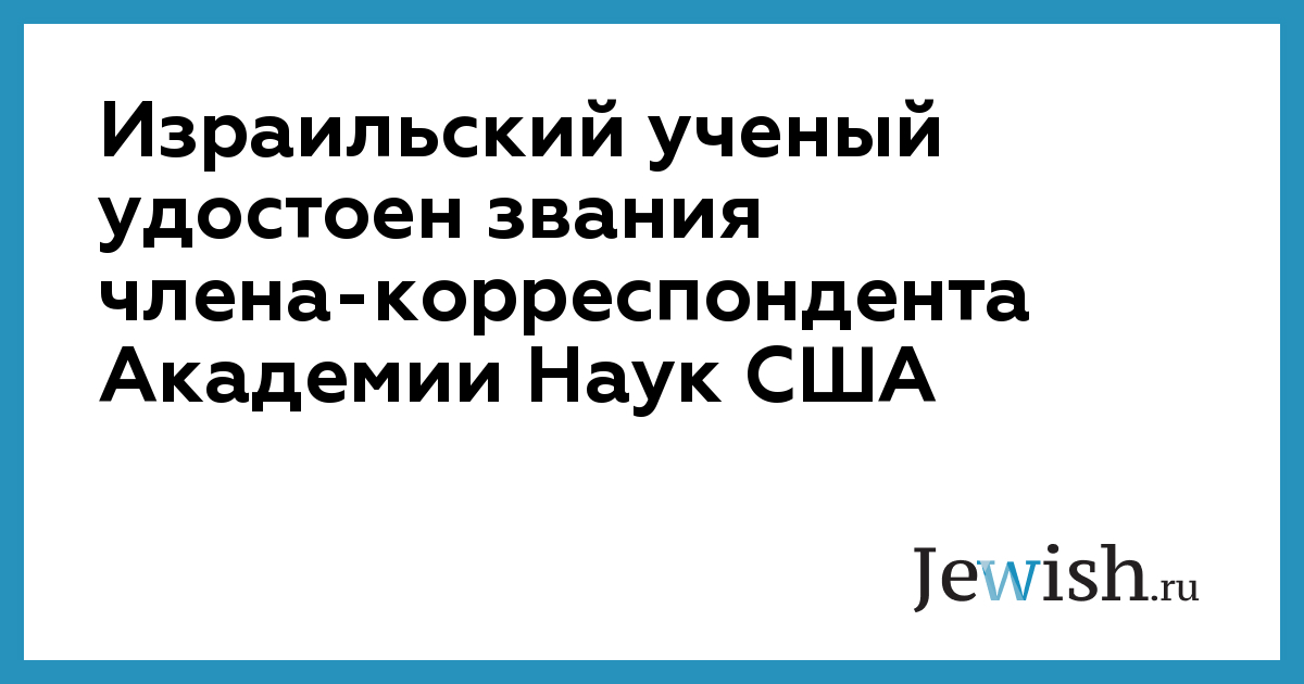 Израильский ученый удостоен звания члена-корреспондента Академии Наук США