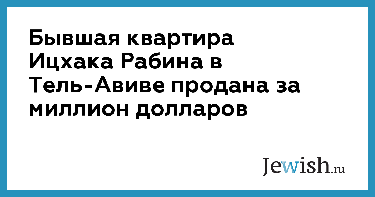 Бывшая квартира Ицхака Рабина в Тель-Авиве продана за миллион долларов