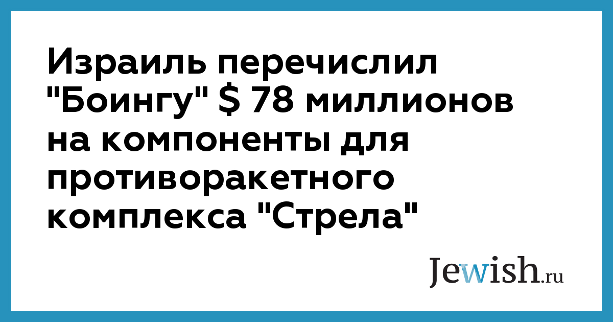 Израиль перечислил "Боингу" $ 78 миллионов на компоненты для противоракетного комплекса "Стрела"