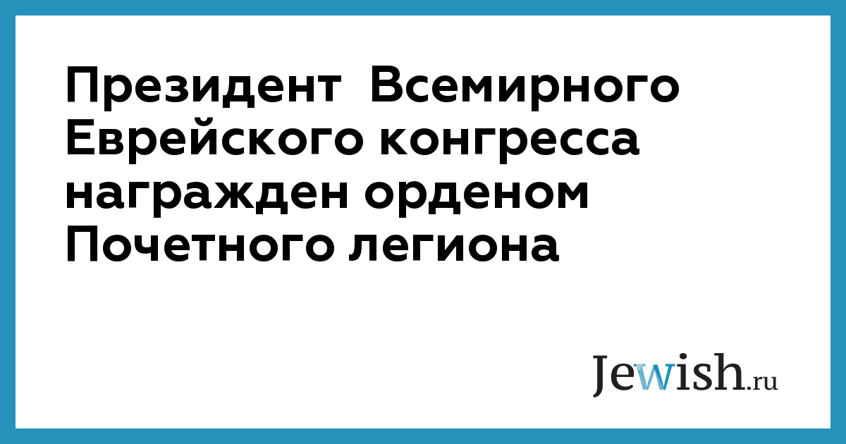 Президент Всемирного Еврейского конгресса награжден орденом Почетного легиона