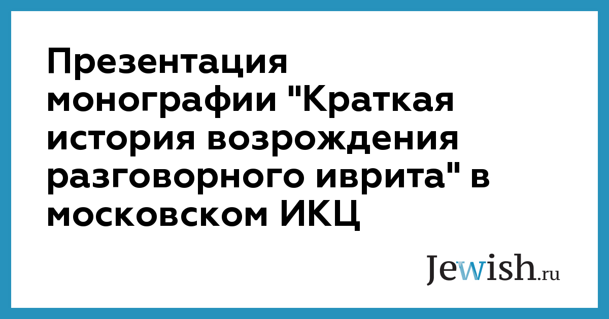 Презентация монографии "Краткая история возрождения разговорного иврита" в московском ИКЦ