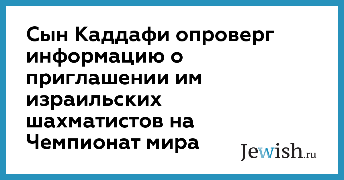 Сын Каддафи опроверг информацию о приглашении им израильских шахматистов на Чемпионат мира
