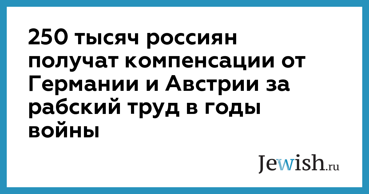 250 тысяч россиян получат компенсации от Германии и Австрии за рабский труд в годы войны