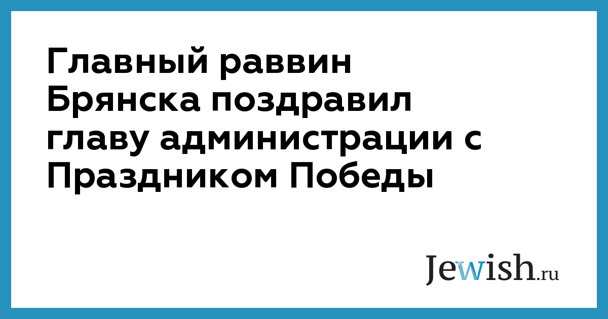 Главный раввин Брянска поздравил главу администрации с Праздником Победы