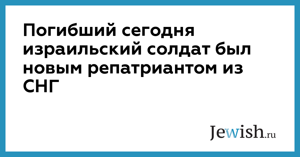 Погибший сегодня израильский солдат был новым репатриантом из СНГ