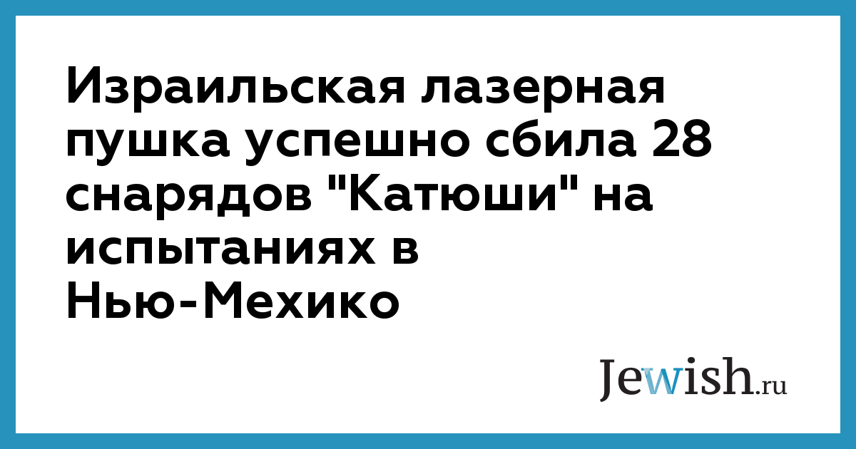 Израильская лазерная пушка успешно сбила 28 снарядов "Катюши" на испытаниях в Нью-Мехико