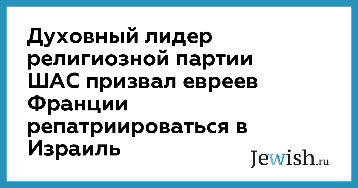 Духовный лидер религиозной партии ШАС призвал евреев Франции репатриироваться в Израиль