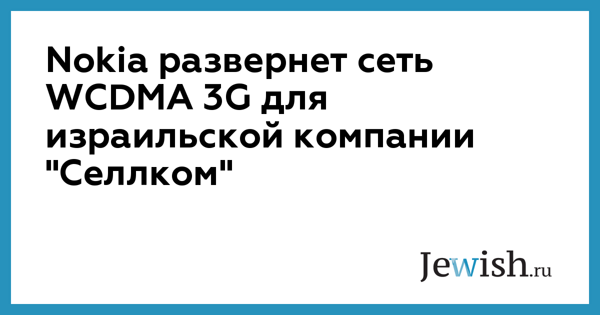 Nokia развернет сеть WCDMA 3G для израильской компании "Селлком"