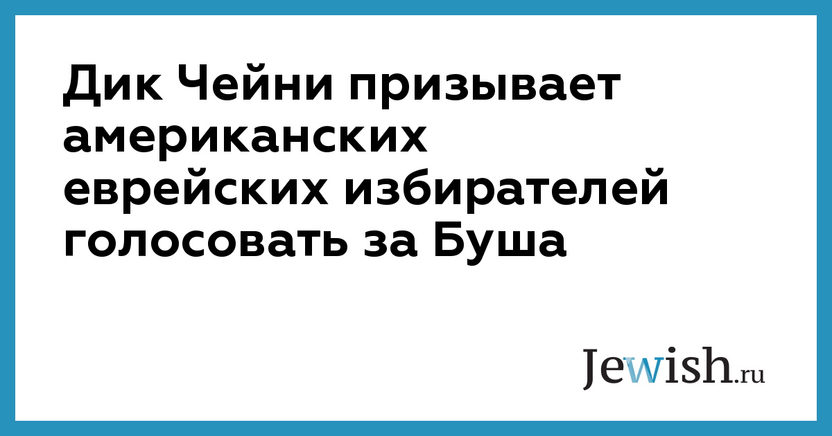 Дик Чейни призывает американских еврейских избирателей голосовать за Буша