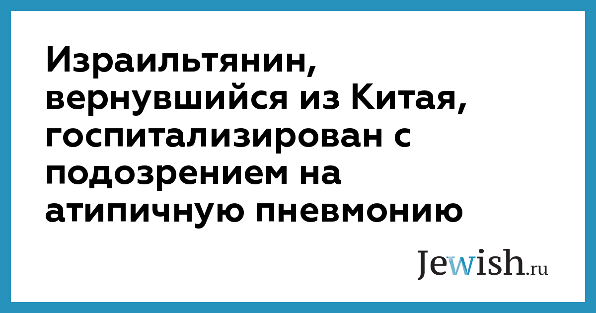 Израильтянин, вернувшийся из Китая, госпитализирован с подозрением на атипичную пневмонию