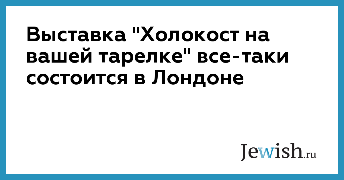 Выставка "Холокост на вашей тарелке" все-таки состоится в Лондоне