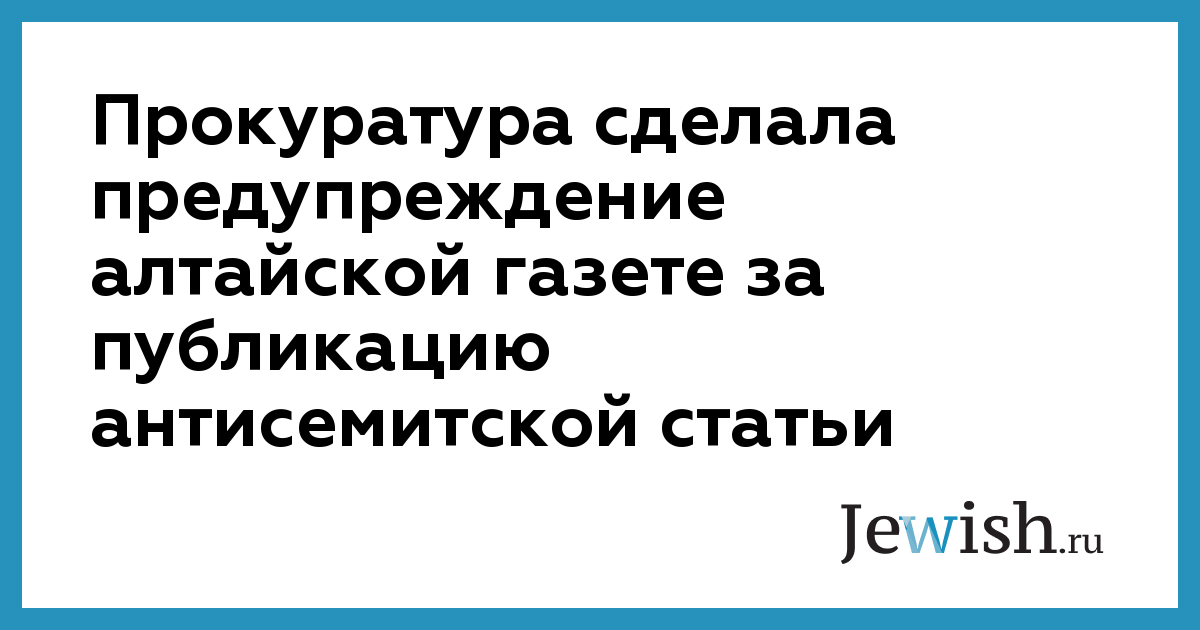 Прокуратура сделала предупреждение алтайской газете за публикацию антисемитской статьи