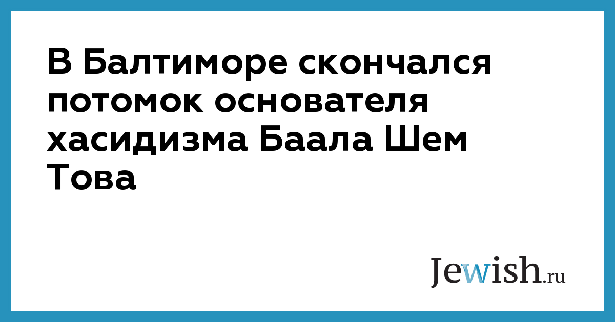 В Балтиморе скончался потомок основателя хасидизма Баала Шем Това