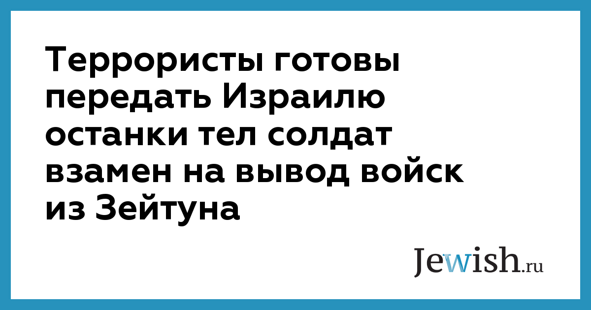 Террористы готовы передать Израилю останки тел солдат взамен на вывод войск из Зейтуна