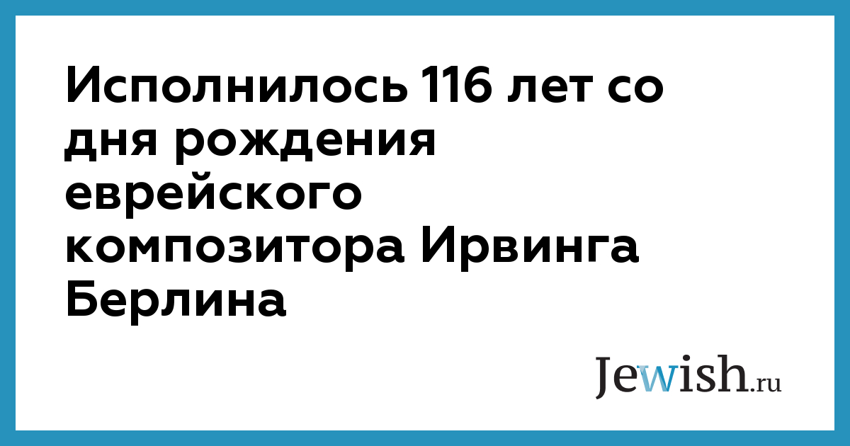 Исполнилось 116 лет со дня рождения еврейского композитора Ирвинга Берлина