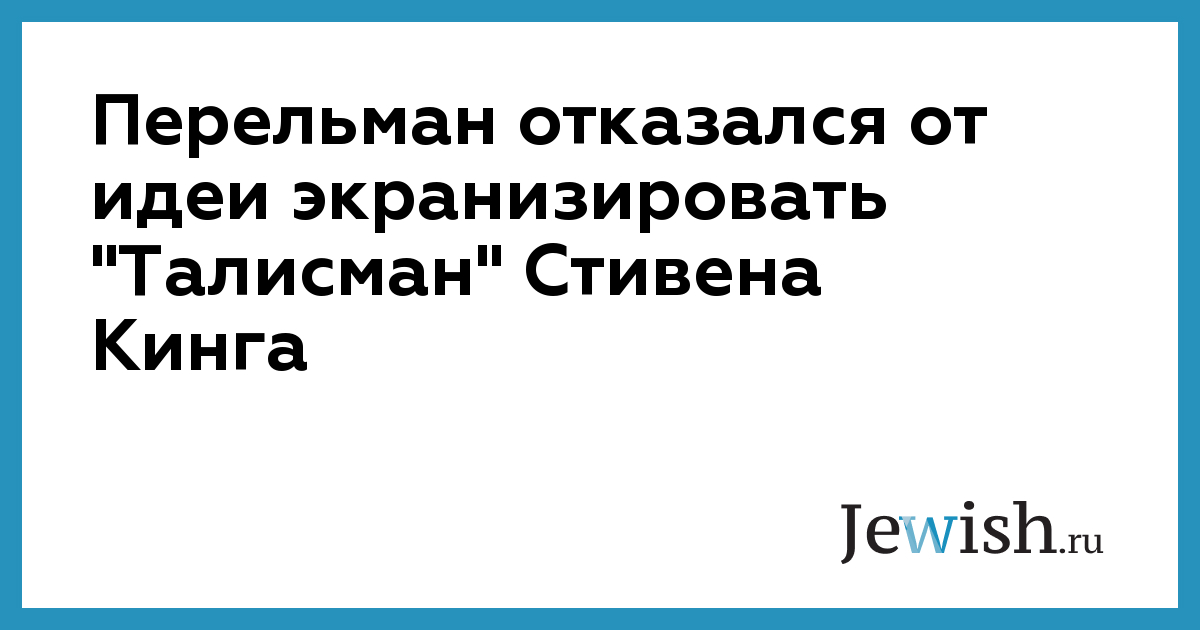 Перельман отказался от идеи экранизировать "Талисман" Стивена Кинга