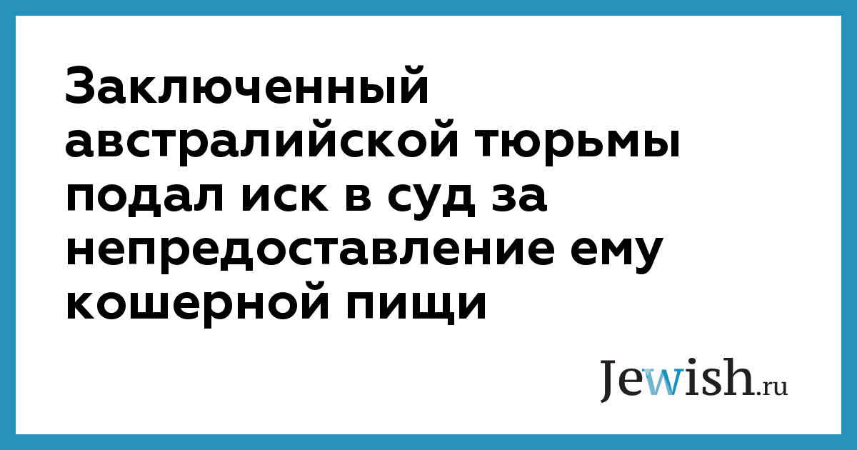 Заключенный австралийской тюрьмы подал иск в суд за непредоставление ему кошерной пищи